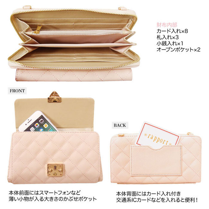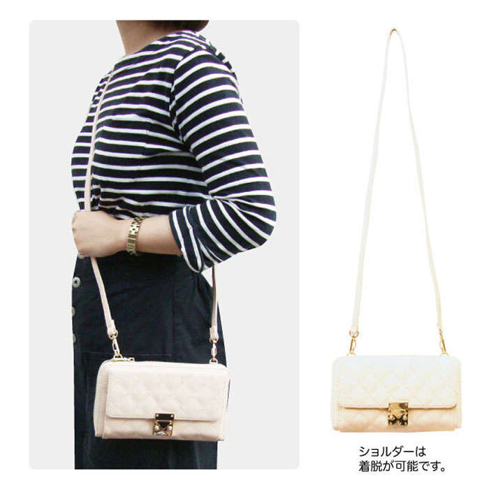 お財布ショルダー レディース 財布 レディース キルティング かわいい 長財布 ポシェット ショルダーバッグ お財布ポシェット クラッチ 合皮 ウォレット 春財布 黒 ブラック ピンク ベージュ 女性 婦人 レディース ファッション【あす楽】 おしゃれ かわいい